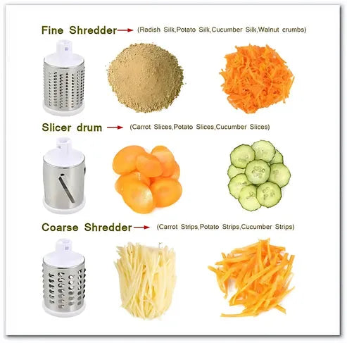 4. Safe Design:Reasonable drum-type rotating vegetable shredder has powerful suction feet for stability on your table.This makes it efficient and easy to operate.