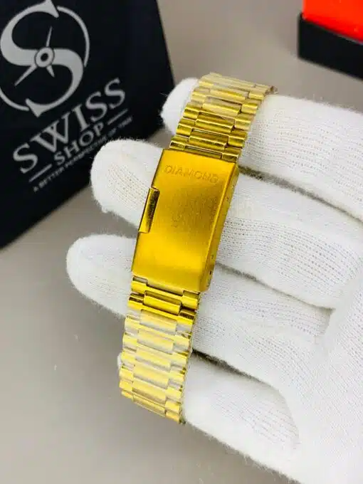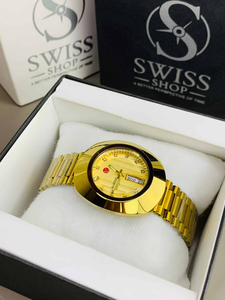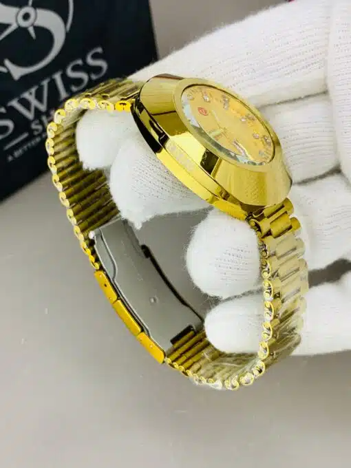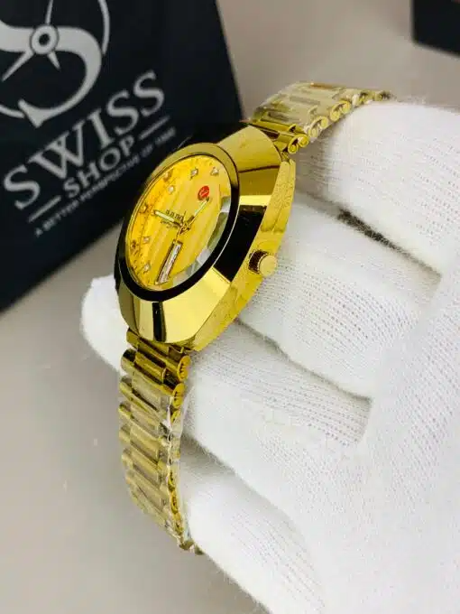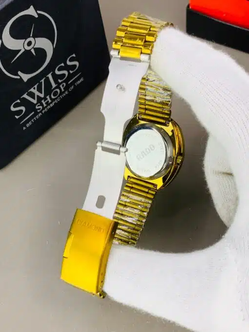 Rado Watch – Gold Dial Golden Chain with White Stones