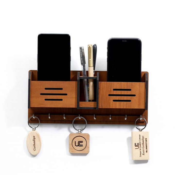 Wooden Mobile & Key Holder – Elegant Wall Organizer for Home & Office